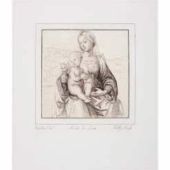 Vierge à L’enfant, Assise, Qui Lit Dans Un Paysage – Raphaël