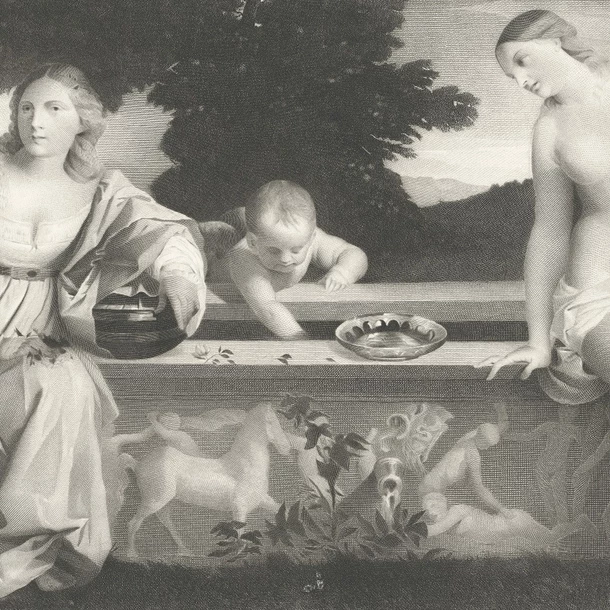 Estampe de l’Amour sacré et de l’Amour profane par Jean-Baptiste Danguin (1823-1894), d’après Titien (1488 – 1576).