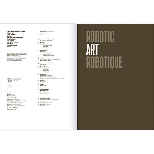Appliquée au domaine artistique, la robotique va bien au-delà de la simple conception technique de robots. Des artistes l’utilisent pour transformer le monde naturel. Ils privilégient des œuvres impressionnantes et pour certaines monumentales, comme les vingt installations et performances présentées dans ce catalogue qui dissipent la frontière entre l’art et les sciences.