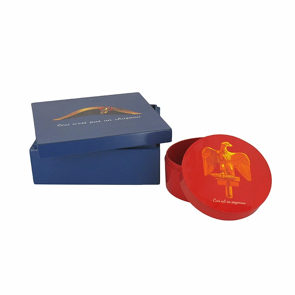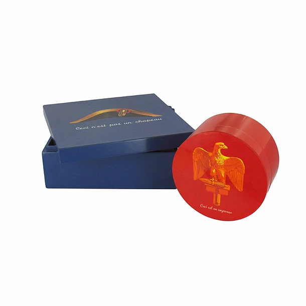 Elle est illustrée du célèbre bicorne de Napoléon avec la phrase-culte de René Magritte : « Ceci n’est pas… ».
