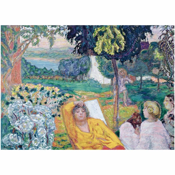Quand un artiste parvient à imposer sa vision du monde, du monde extérieur comme de son monde personnel et imaginaire, quand il réussit peu à peu à tout rassembler en un ensemble cohérent, ses sujets, sa technique, sa gamme de couleurs, ses compositions, ses angles de vue et ses audaces, alors tous ses tableaux en viennent à s’ancrer en nous, à nous accompagner dans notre vie de tous les jours – déjeuners en famille à la campagne, jeux en plein air et en plein soleil, paysages de Normandie ou du Midi mi-réels mi-paradisiaques, grands nus de sa compagne et modèle Marthe… Alors, face à un ciel rose et mauve du soir, devant des nuages d’orage qui se découpent sur du violet, du jaune et du vert, on dit, un peu impressionné : « Regarde, c’est un Bonnard !»