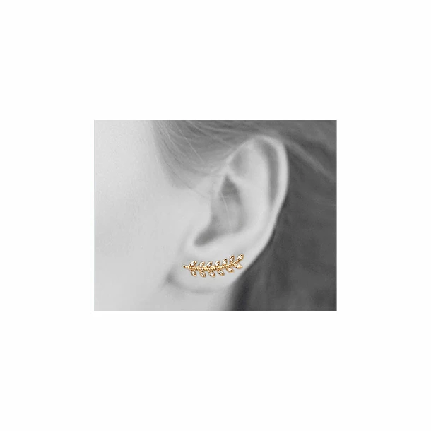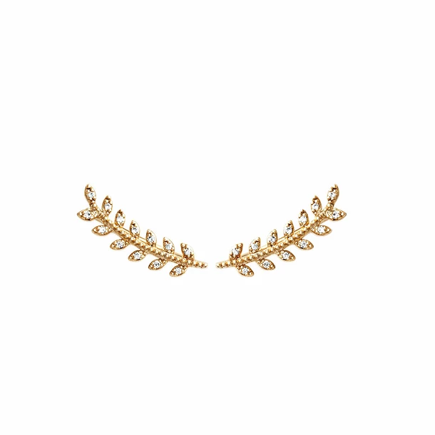 Boucles d’oreilles contour de lobe en laiton plaqué or avec un design élégant et minimaliste reprenant un motif décoratif avec des feuilles de laurier.