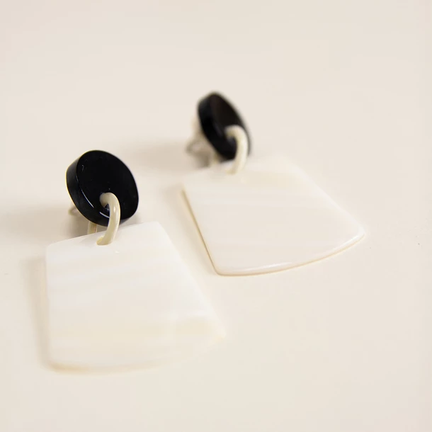 D’élégantes boucles d’oreilles en forme de battoirs en nacre blanche.