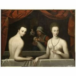 Le raffinement précieux des poses témoigne de l’influence de la peinture flamande sur les artistes français de la fin du XVIème siècle et de l’importance de la culture du bain aristocratique, emblématique de Fontainebleau depuis le règne de François Ier.