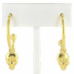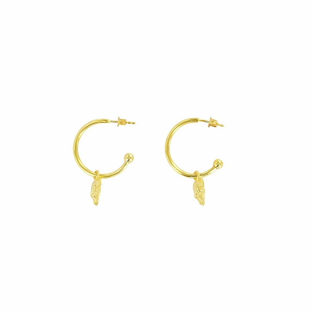 Ces boucles d’oreilles en laiton doré sont inspirées d’une amulette avec la tête de bélier d’Amon.