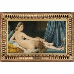 Commandée par Joachim et Caroline Murat, souverains de Naples, la Grande Odalisque est le nu le plus célèbre d’Ingres. Cette femme allongée sur un divan qui nous regarde évoque l’Orient sensuel, en ne montrant que son dos et l’arrondi d’un sein. Le tableau fut peint à Rome, où Ingres avait été pensionnaire de l’Académie de France de 1806 à 1810. Exposée au musée du Louvre à Paris à l’occasion du Salon de 1819, cette œuvre fut mal accueillie, confirmant l’incompréhension des critiques envers le style du peintre. Ces derniers reprochèrent à Ingres son mépris de la vérité anatomique (corps trop onduleux, bras trop longs, vertèbres surnuméraires…), l’uniformité jugée peu naturelle du teint de l’odalisque, et le manque d’expression du visage, qui rendait difficile la caractérisation du personnage, l’identification de son tempérament ou de son histoire, autant d’éléments narratifs dont le public de l’époque était en attente.Mais les détails du tableau sont exécutés avec une grande précision : texture et richesse des tissus, rendu rigoureux du turban, détails d’un éventail en plumes, minutieux enrubannement autour d’un large bracelet, délicat croisillon de deux joncs….