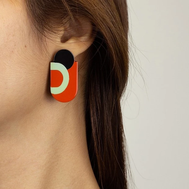 Boucles d’oreilles en corne noire de zébu africain et laque de la marque L’Indochineur.