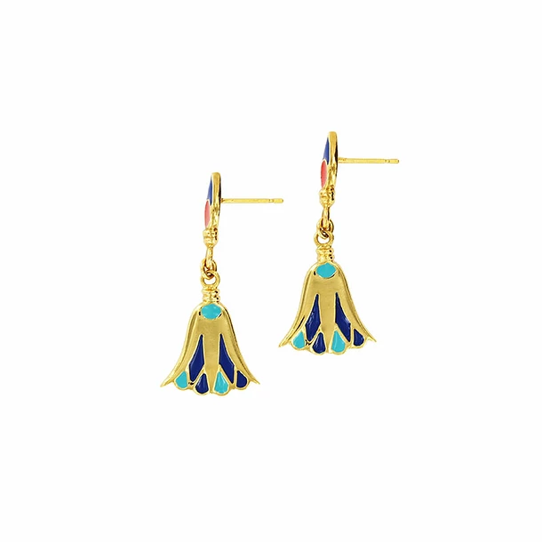 Ce bijou s’inspire d’une bague dite Bague aux lotus (Nouvel Empire, vers 1565-1085 avant J.-C. Or, lapis-lazuli, turquoise, cornaline – Musée du Louvre, Paris).