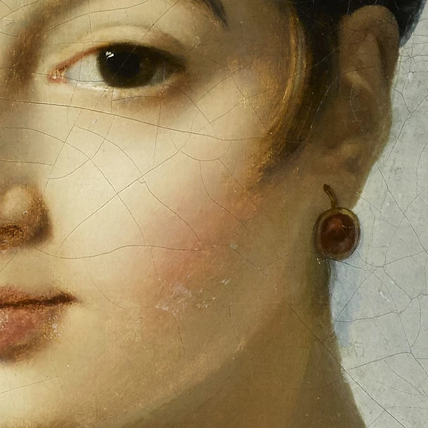 Bijou dérobé inspiré de la paire de boucles d’oreilles portée par Mlle Caroline Rivière, visible sur son portrait peint par Jean-Auguste-Dominique Ingres (1780 – 1867). Legs Mme Paul Rivière, née Sophie Robillard, belle-sœur du modèle, 1870.
