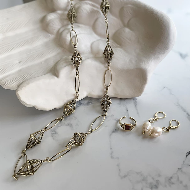 Ces boucles d’oreilles sont inspirées d’un détail de l’œuvre du peintre de la renaissance italienne Francesco Mazzola, dit Parmesan (1503-1540), Portrait de jeune femme, dite Antea, vers 1535.