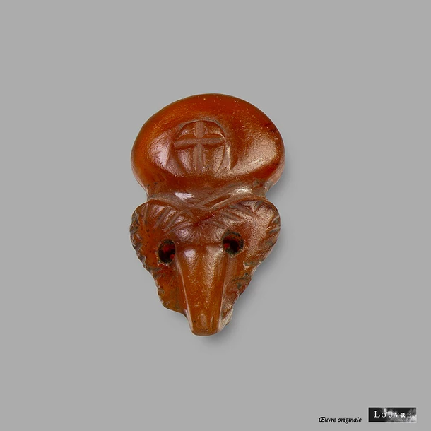 Les boucles d’oreilles sont inspirées d’une amulette avec la tête de bélier d’Amon.