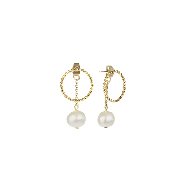 Boucles d’oreilles en laiton doré à l’or 24 carats, ornées de perles de culture.