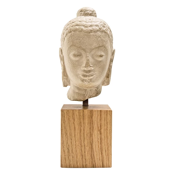 La petite tête de ce Buddha Gupta n’a pas de provenance connue avec précision. Néanmoins, la pierre dans laquelle elle a été sculptée pourrait être celle qui fut largement utilisée par les ateliers de la région de Sârnâth (près de Bénarès, au bord du Gange), lieu où le Buddha Câkyarnuni prononça sa première prédication au Vl° siècle avant l’ère chrétienne.