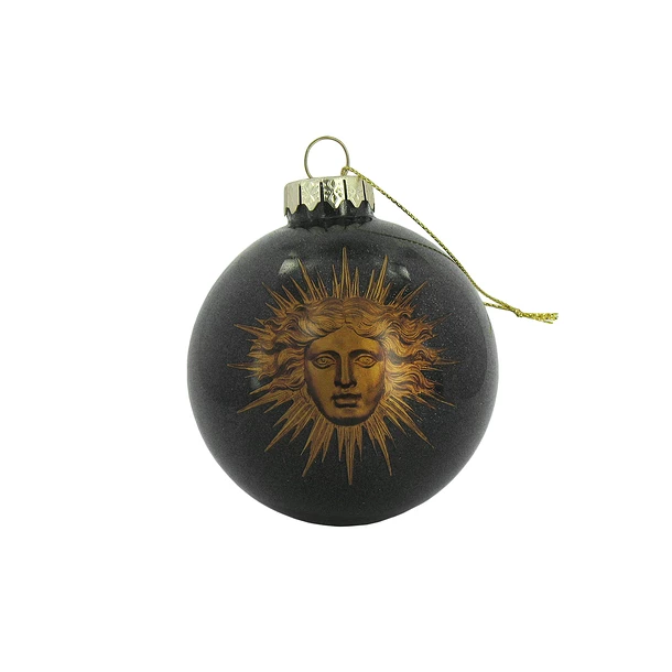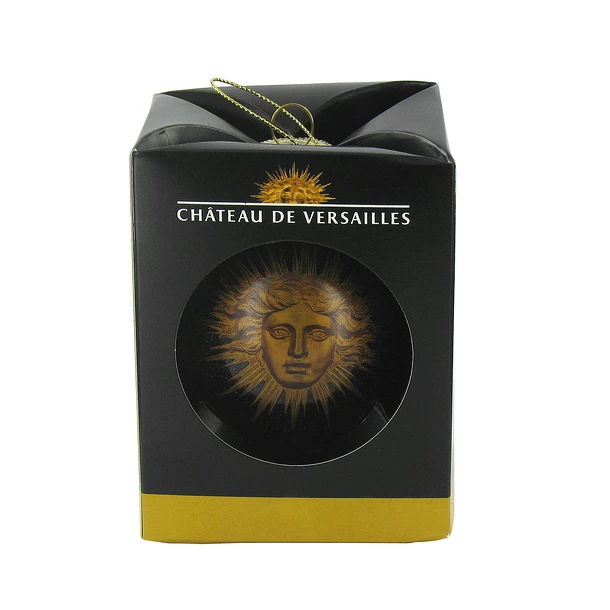 Boule de Noël en verre ornée de l’emblème du soleil choisi par Louis XIV à l’occasion du Carrousel de 1662.