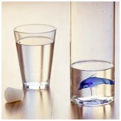 Carafe d’eau Balvi en verre borosilicate avec un bouchon de silicone, une figurine de dauphin en verre coloré est fixée à l’intérieur.
