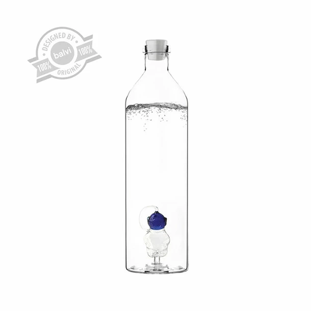 Carafe d’eau Balvi en verre borosilicate avec un bouchon de silicone, une figurine de plongeur scaphandrier est fixée à l’intérieur.