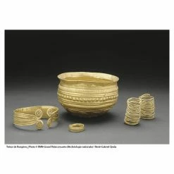 En 1911, on trouva dans un champs, à Rongères (Allier) un dépôt d’objets en or : un bracelet, deux spirales, une bague, étaient contenus dans une tasse de même métal au décor repoussé et estampé. Le bracelet se compose d’un épais ruban au décor en relief moulé, repris au poinçon, pour les petites cupules ; les extrémités se terminent par des fils enroulés en double volutes. Ce bijou est, comme les autres éléments du dépôt, d’un type caractéristique des productions de cette époque en Europe Centrale et Septentrionale, mais beaucoup plus rare à l’Ouest, ce qui confère un intérêt exceptionnel à cette trouvaille parmi les plus connues de la luxuriante orfèvrerie de l’Age du Bronze.