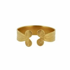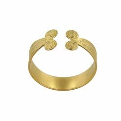 Ce bracelet en plaqué or s’inspire du bracelet de Rongères (Rongères Bronze moyen XIIIè – XIIè s. av. J.-C. – Or / Musée d’Archéologie nationale, Domaine National, Saint-Germain-en-Laye)
