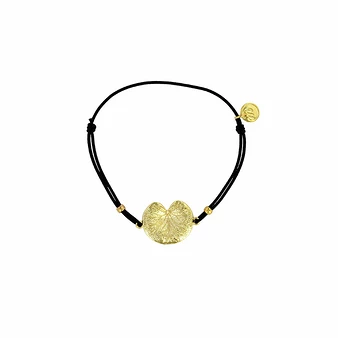 Ce bracelet élastique avec un charm en forme de nymphéa en étain doré est librement inspiré de la célèbre série des peintures de Claude Monet: Les Nymphéas, réalisée entre 1890 et 1926.