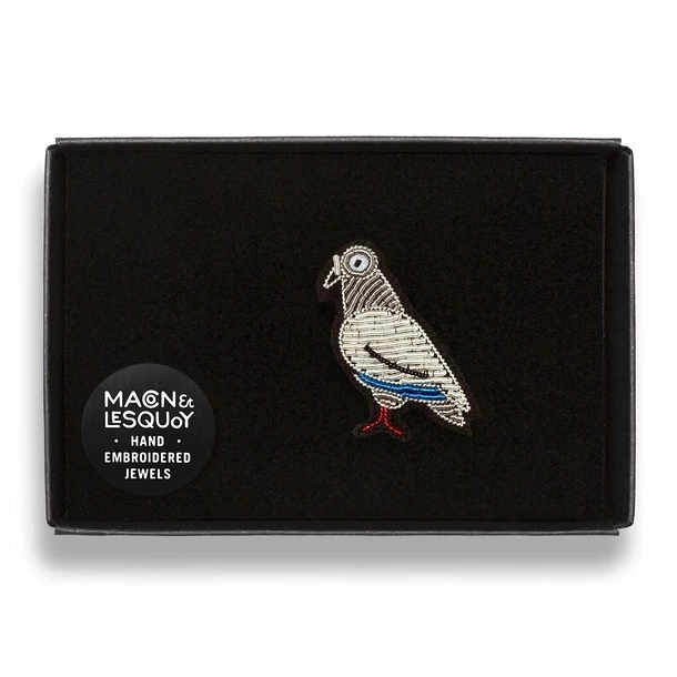 Dessinée et brodée avec soin par Macon & Lesquoy, cette broche est l’accessoire indispensable de l’élégance… Jusque dans son coffret en carton et velours !