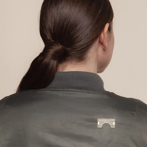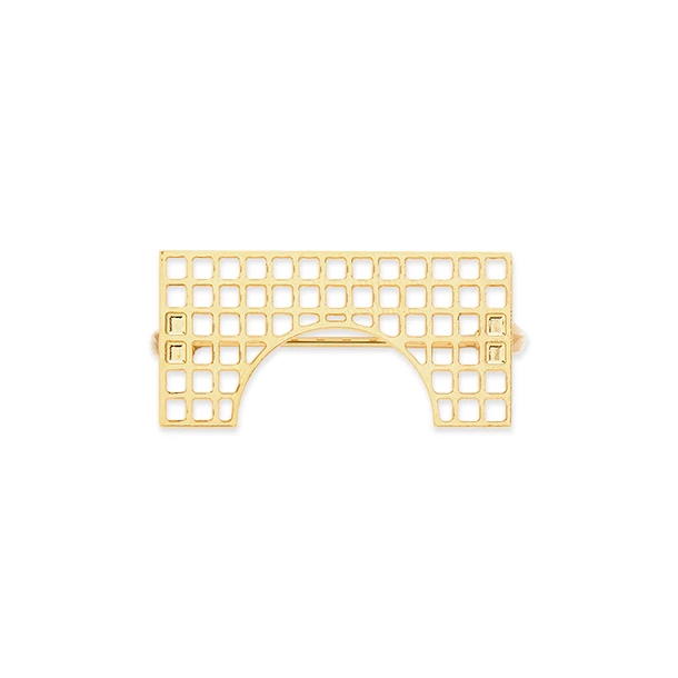 Avec sa grille carrée et ses formes géométriques, la broche Arche est la note moderne de la collection Tuileries.