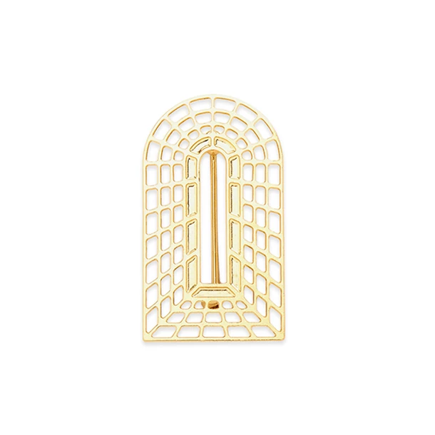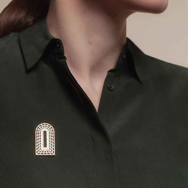 La broche Passage dessine une porte imaginaire, directement inspiré des trompe-l’œil en treillage.