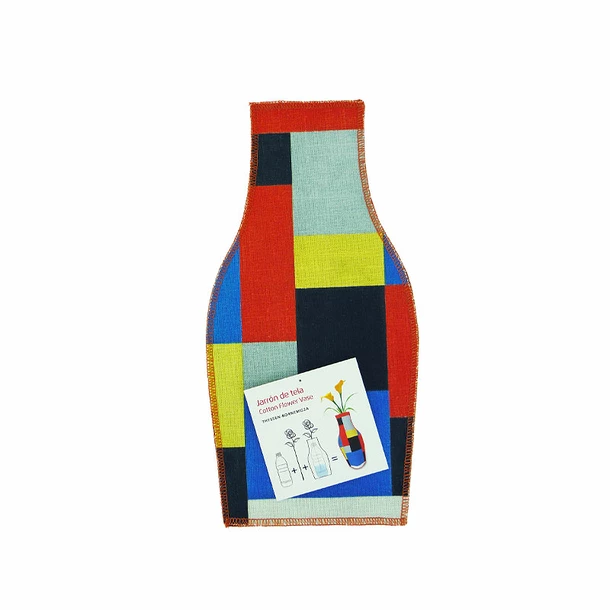 Ce cache vase en coton inspiré d’une œuvre de Theo van Doesburg transforme une bouteille ou un bocal vide en un vase moderne.
