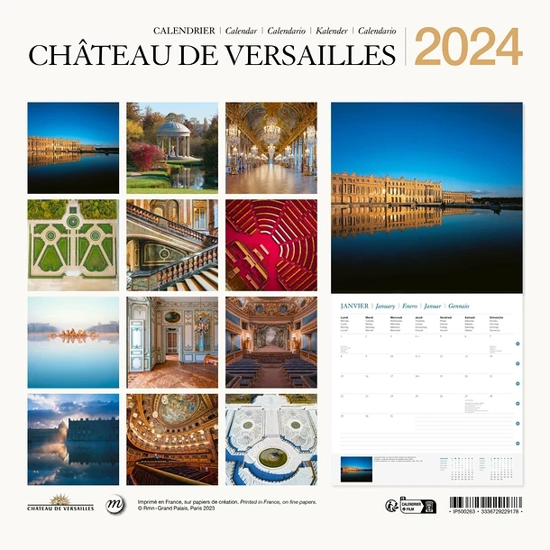 Calendrier 2024 présentant 12 vues du Château de Versailles.