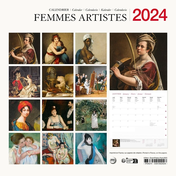 Calendrier 2024 présentant 12 œuvres de femmes peintres majeures de plusieurs courants artistiques.