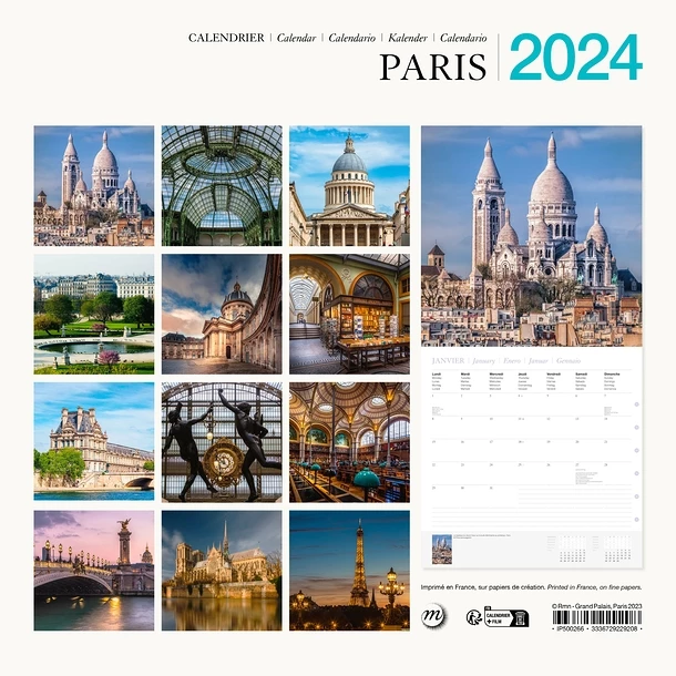 Calendrier 2024 présentant 12 vues de Paris.