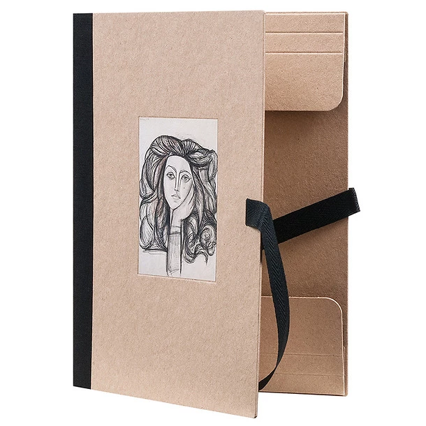 Carton à dessins, 17,5 x 23 cm, fermeture par rubans, dos toilé.