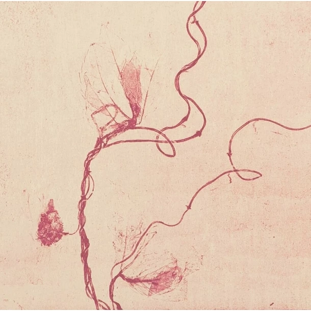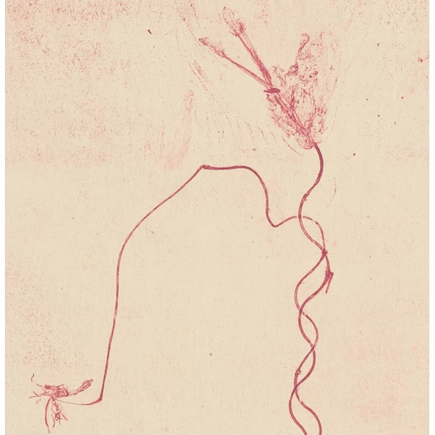 Un dialogue s’établit à partir de ses tiges qui se caressent et se heurtent au centre de l’épreuve. Elles dansent et accompagnent leur semence volatile, transcrites par de fins points dispatchés dans les airs.