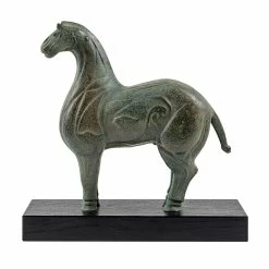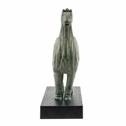 Le petit bronze du Musée National des Arts Asiatiques-Guimet appartient à ce lot de pièces insignes, datable de la fin des Qhou. Son audacieuse schématisation renforce l’effet expressionniste de cet impétueux coursier. Il semble dompté, les muscles bandés dissimulant à peine sa solide charpente osseuse.