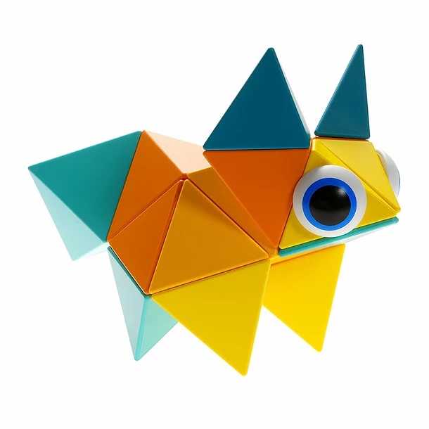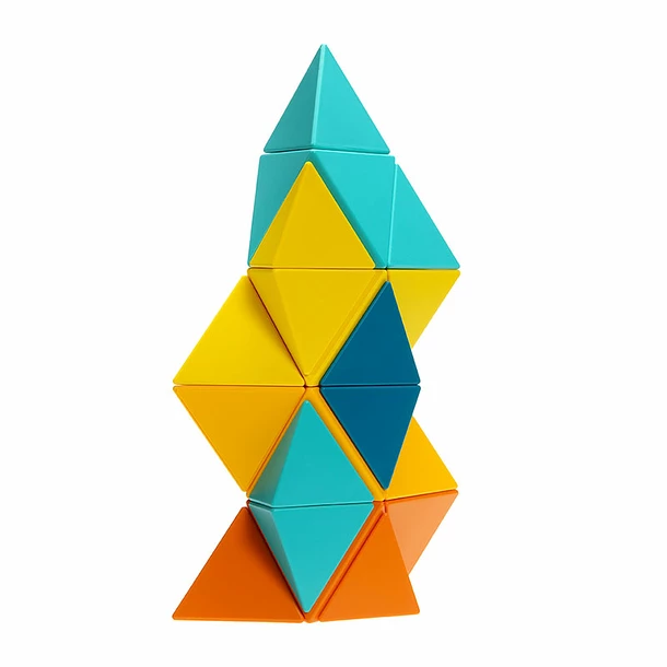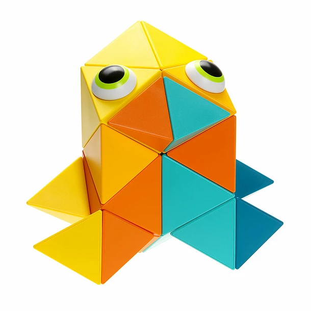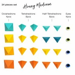 Le set comprend : 4 octaèdres, 8 tétraèdres, 8 demi-tétraèdres, 4 yeux (au total 24 pièces) + Dépliant.