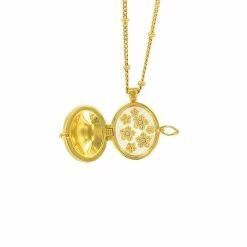 Apparu dès l’Antiquité, le médaillon se porte d’abord comme une amulette, qui protège son détenteur. Vers la fin du XVIe siècle, le médaillon perd de son pouvoir mystique : les porte-bonheurs qu’il contenait sont remplacés par des portraits peints à la main, des mèches de cheveux d’un être aimé ou disparu, parfois même du poison. Le médaillon devient un bijou romanesque : visible de tous, il renferme des secrets connut de son seul porteur. La maison les Néréides Paris a créé pour la RmnGP un médaillon à secret inspiré par la personnalité de Marie-Antoinette. Décoré de son monogramme sur fond bleu, teinte que la Reine choisit en 1787 pour redécorer son boudoir du Petit Trianon, il représente le côté rigide de la vie à la cour. Le médaillon une fois ouvert, révèle des fleurs champêtres finement ciselées, au cœur orné de strass et symbolise la quête de simplicité et d’évasion de la Reine.