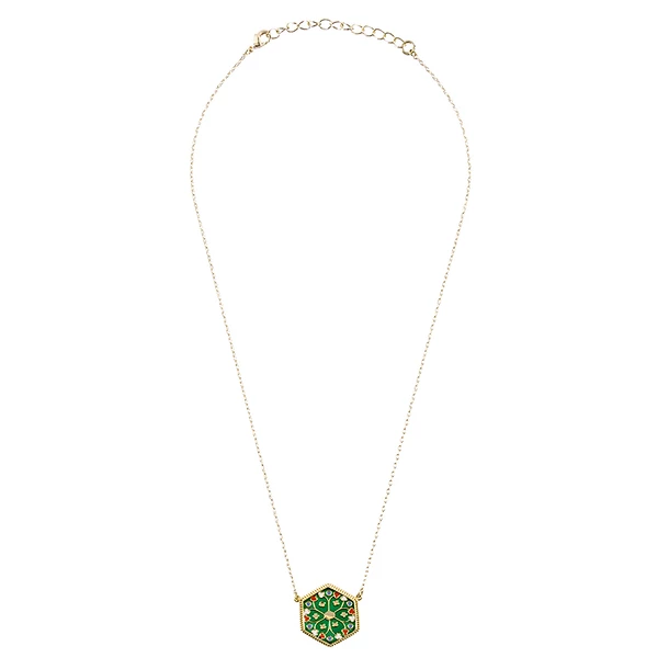 Ce collier s’inspire d’un émail de plique, qui est un terme utilisé pour désigner un ornement habituellement cousu sur un vêtement. Cet élément de parure luxueux est une création spécifique de l’orfèvrerie parisienne vers 1300.