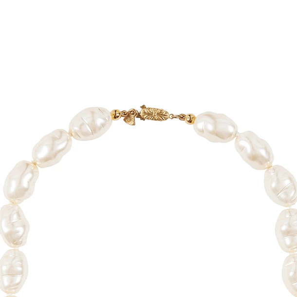 La courtisane porte un collier de perles et des boucles d’oreilles, indiquant certainement son mode de vie décadent. Les perles sont considérées comme des attributs de Vénus, déesse de l’amour, et symbolisent souvent l’amour vénal.