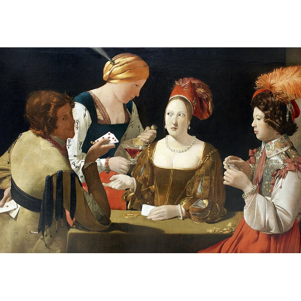 Il s’agit d’un des tableau phare du peintre. Il représente une scène de triche : on y distingue le jeune homme trichant, une courtisane, une servante, et le joueur victime de triche.