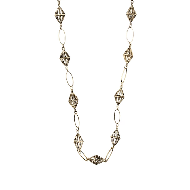 Ce collier est inspiré d’un détail de l’œuvre du peintre de la renaissance italienne Francesco Mazzola, dit Parmesan (1503-1540), Portrait de jeune femme, dite Antea, vers 1535.