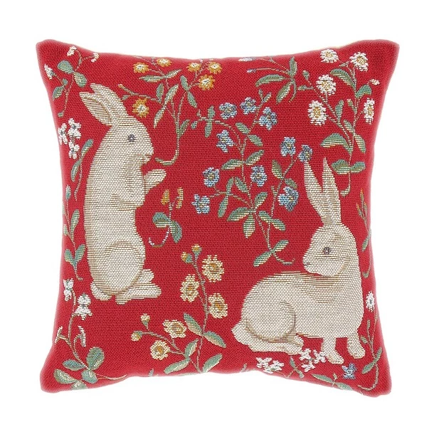 Cette housse de coussin est illustrée par un détail de la célèbre tenture de la Dame à la Licorne exposée au musée de Cluny.