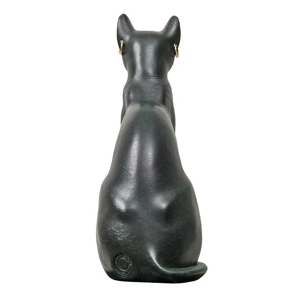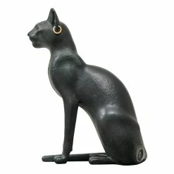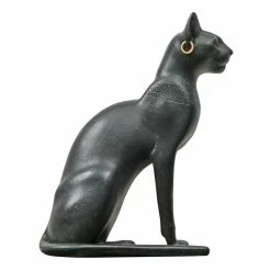 La déesse Bastet est associée à la fécondité et à la protection du foyer. Représentée par une femme à tête de chat ou par un félin, son culte se développe au 1er millénaire avant J-C. De nombreuses petites figurines de la déesse, le plus souvent en bronze, sont alors déposées dans les temples par les fidèles désirant s’attirer ses faveurs.