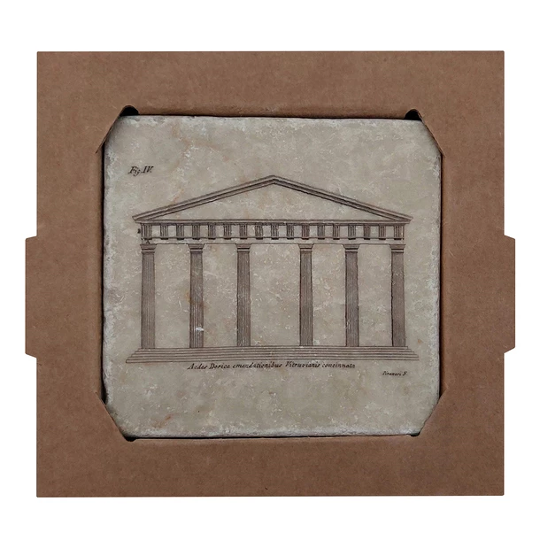 Dessous de verre en marbre reprenant le motif d’une fresque grecque en mosaïque.