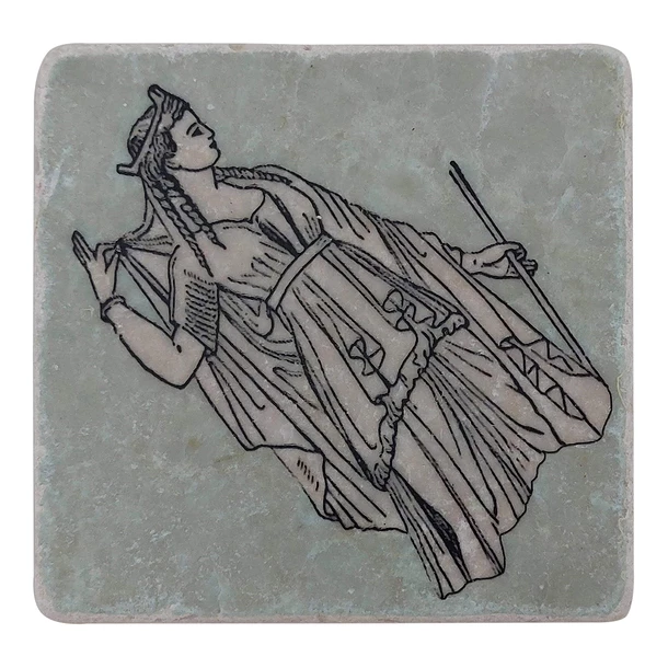 Dessous de verre en marbre reprenant le motif d’une fresque grecque en mosaïque.