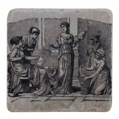 Dessous de verre en marbre reprenant le motif d’une fresque grecque en mosaïque.