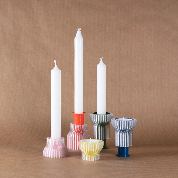 2.21 est un double bougeoir, il peut accueillir aussi bien une bougie chauffe plat qu’une chandelle selon la face sur laquelle il est posé.