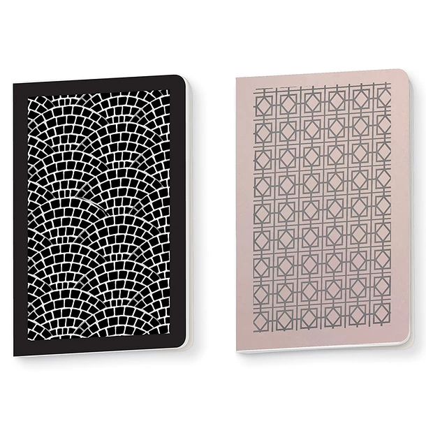 Ces deux carnets avec une finition argentée sont illustrés avec des décors typiquement parisiens, motifs des grilles et assemblages de pavés présents dans les rues.