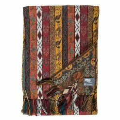 Cette pièce chatoyante est un lampas de soie à décor de rayures verticales portant des motifs alternativement colorés. Dessins géométriques floraux et animaliers se développent sur le tissage en un rythme très subtil et d’une grande modernité.