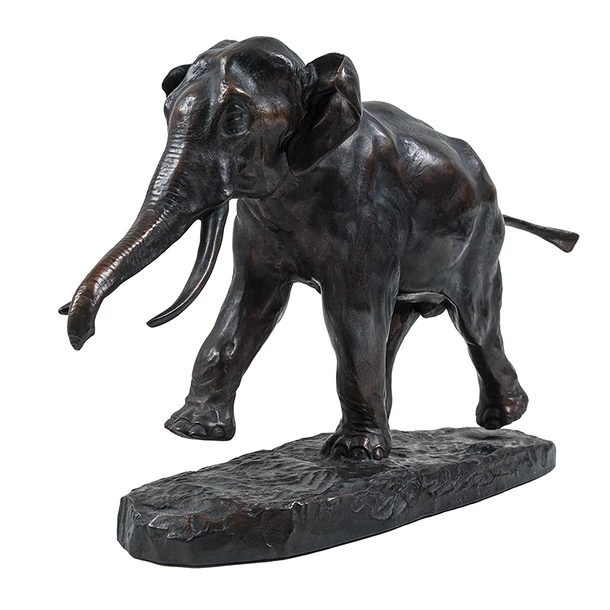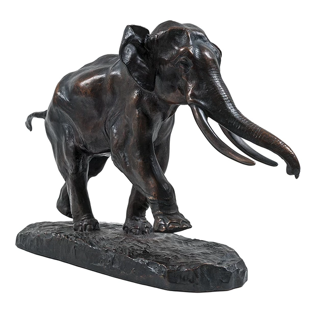 Cet Éléphant courant ou « Éléphant du Sénégal » est une des pièces de référence de l’Artiste. Tout est dans le mouvement et dans la force. Barye préférait le bronze au marbre qu’il juge trop froid.