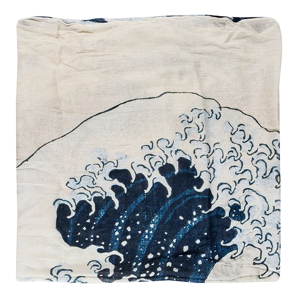 Cette étole grand format s’inspire d’un détail d’une des œuvres les plus célèbres de l’artiste japonais Katsushika Hokusai (1760-1849), « Sous la vague au large de Kanagawa » (« la grande vague ») (Kanagawa oki namiura) 1830-32.