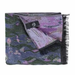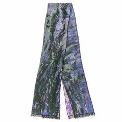 Cette étole est inspirée d’une partie de l’ensemble présenté à l’Orangerie, composition d’un paysage d’eau jalonné de nymphéas, de branches de saules, de reflets d’arbres et de nuages, « illusion d’un tout sans fin, d’une onde sans horizon et sans rivage » selon les termes mêmes de Claude Monet (1840-1926).